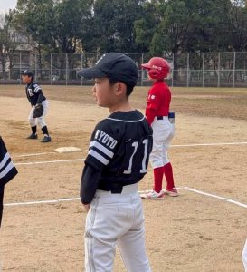 チームで一番ボールを飛ばす能力はある!この日も強烈なセンターオーバーを弾丸ライナーで打ってくれました♪えぐい打球でしたよ!!!理功はホームランバッターになれる素質を持ってます!タイミングの取り方を覚えれば、素晴らしいスラッガーになります!今はタイミングが上手く取れていないので、ここは改善ポイント♪